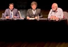 “Bienvenido a América, donde te podés equivocar en el trabajo, ser despedido, readmitido y recibir una propina de 7 mil millones dólares. Pasá, sentate y llenate los bolsillos. Medios de comunicación, sobrecarga informativa”, recita el artista y sus coristas como si se tratara de eslóganes.