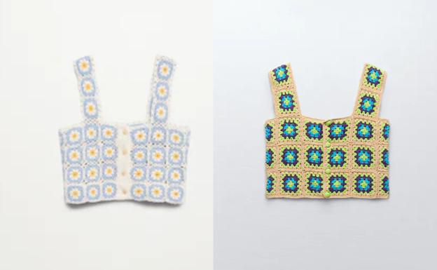 Y nos han encantado los tops que hemos encontrado en ambas tiendas, tanto en Mango como en Zara. El de Mango es de tirantes anchos, con margaritas blancas sobre una base azul y corte crop y cuesta 39,99 euros. Y el de Zara también tiene corte crop y tirantes anchos, pero el diseño es multiculor, para las más atrevidas. Tiene un precio de 25,95 euros.
