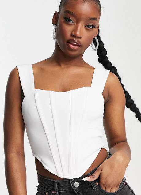Si prefieres una versión más ortodoxa del top corsé blanco, como la que luce Teresa Bass, el low cost te propone varias opciones en un rango de precio bastante amplio. Ya sabes: todo depende de la calidad de los materiales y acabados. Si va a ser una prenda que saques poco del armario y no le vas a dar mucho uso, puedes optar por el corsé de satén de Missguided, perfecto para las noches de verano: está rebajado y pasa de 36,99 euros a 14,99 euros.