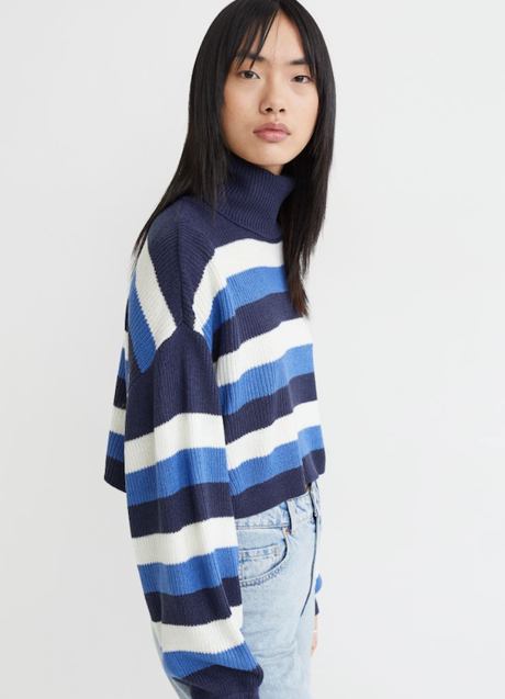 jersey perfecto para clonar el look que propone Kendall Jenner. Se trata de un jersey con cuello alto en punto canalé suave, con los hombros caídos (19,99 euros). Lo que nos ha hecho decidirnos por este jersey para nuestra selección es la combinación de color: los