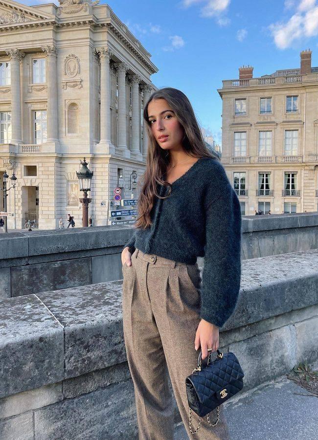 Y ante la duda, apuesta por una prenda de punto. Las chaquetas serán las mejores aliadas de este tipo de pantalones. Si quieres conseguir un estilo sofisticado apuesta por el cárdigan, en un color elegante como el gris.