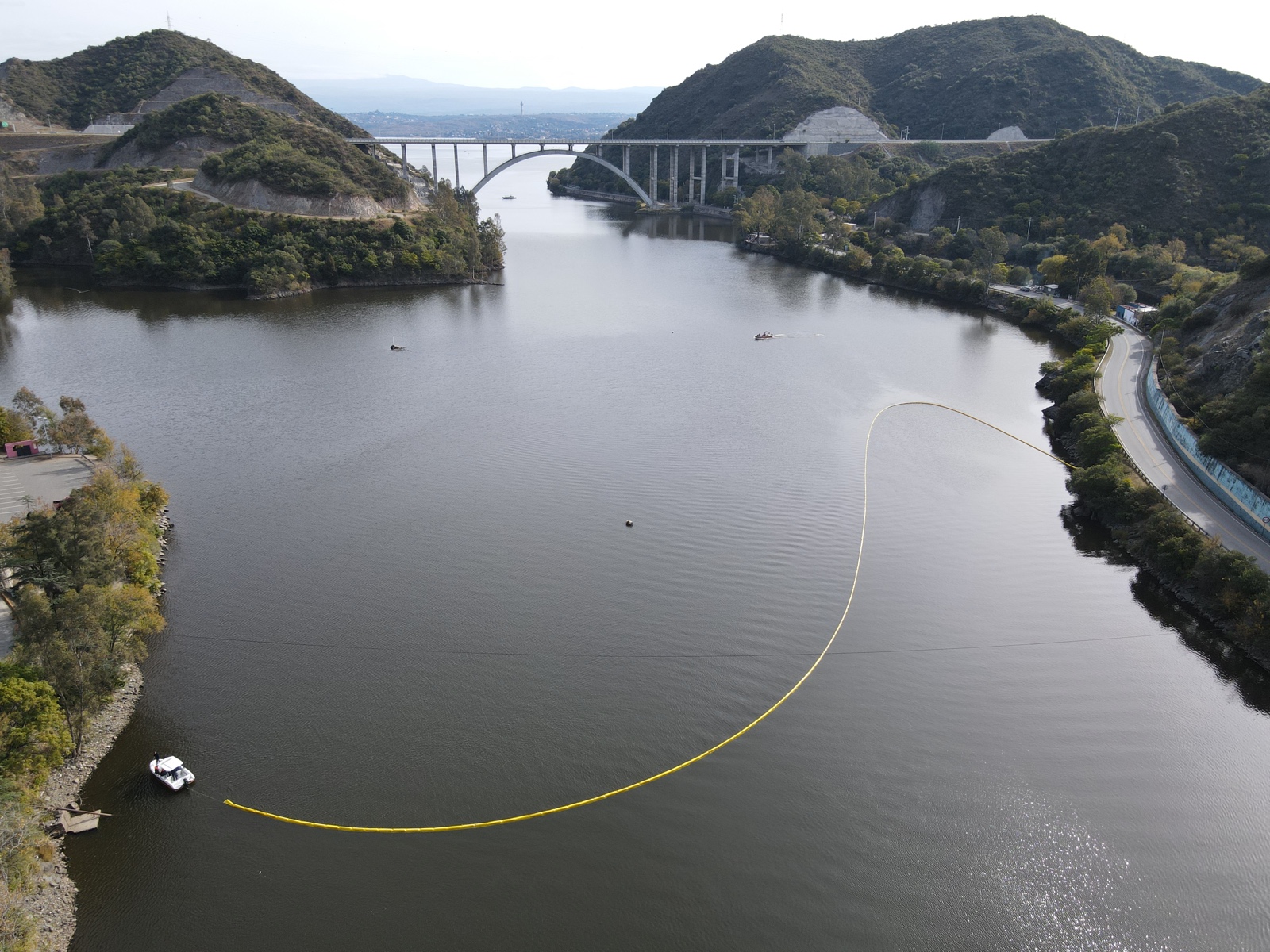 El trabajo incluyó la colocación de 300 metros de barreras, que cumplen con la finalidad de sectorizar y contener los afloramientos de cianobacterias.