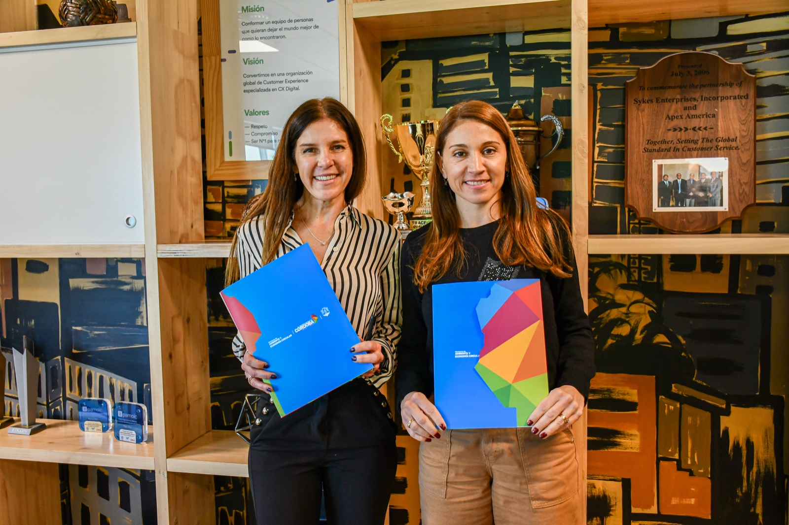 La ministra de Ambiente y Economía Circular, Victoria Flores, firmó un convenio de cooperación con la apoderada de la empresa Apex, María Florencia Oria, con el objetivo de promover la educación ambiental mediante diversos procesos de formación y aprendizaje.