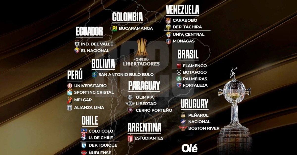 - Chile (todos definidos): Colo Colo y U. de Chile a grupos y Deportes Iquique y Ñublense a fases previas.
