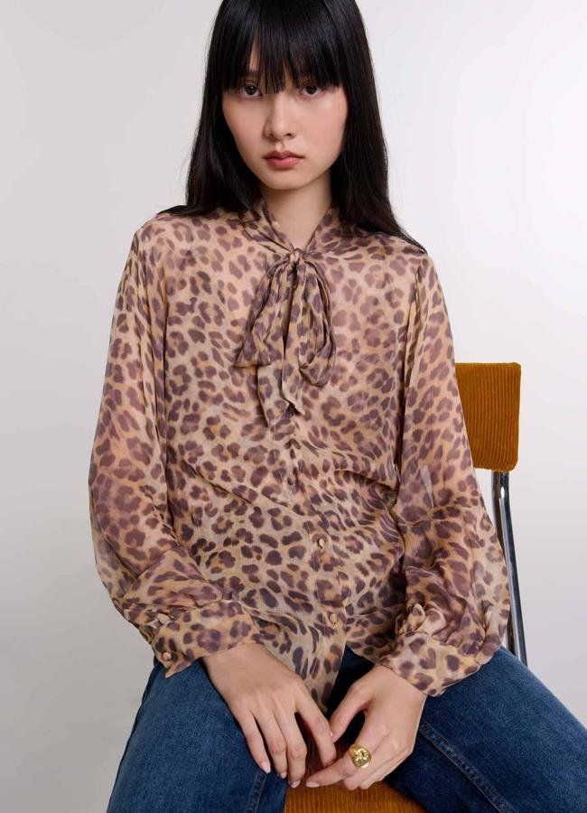 Adornada con un estampado de leopardo, esta camisa fluida juega es de Maje. Con una camiseta de tirantes desmontable, mangas largas, un cierre y puños abotonados. Su versátil cuello con lazo puede llevarse abierto para un look informal o atado para un aspecto elegante. Precio: rebajada a 129 euros.