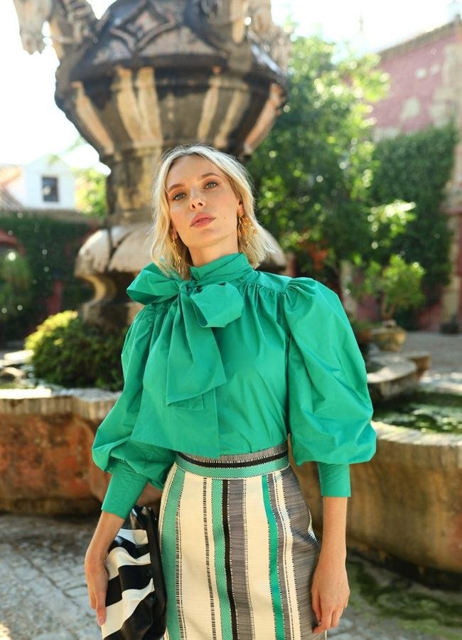 Pon color a tus looks de primavera con esta blusa de tafetán de manga larga en tono verde con un lazo llamativo en el cuello y un diseño de volumen en los hombros. Es de Panambi y tiene una estructura aporta sofisticación. Precio: 175 euros.