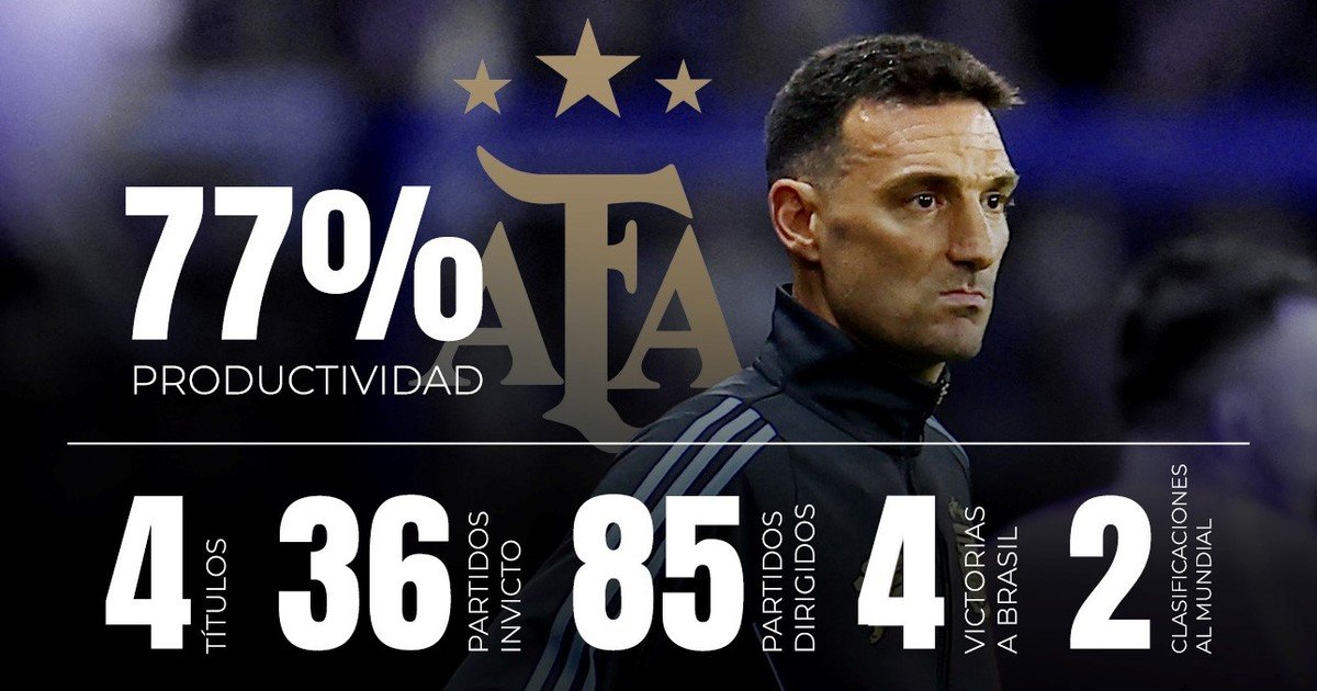 Además, este ciclo, con Scaloni al frente, logró la mayor racha invicta en la historia de la Selección Argentina: fueron 36 partidos sin perder durante dos años y medio, superando la marca que el seleccionado de Alfio Basile logró entre el 91 y el 93, con 31 encuentros sin derrotas.
