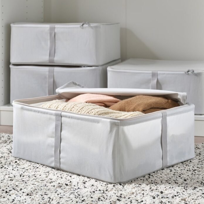 Esta opción de Ikea presenta un diseño de rayas muy estiloso y funcional. Su estructura flexible se adapta perfectamente a las prendas que guardemos en su interior, asegurando que se mantengan organizadas y en buen estado. Además, si el espacio en el canapé ya está ocupado, esta caja es una excelente opción para almacenar zapatos, ofreciendo una solución práctica y compacta para maximizar el almacenamiento sin perder el toque decorativo. Ideal para quienes buscan orden sin comprometer el estilo.