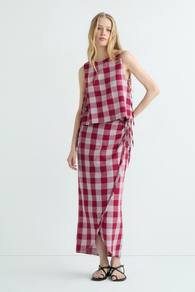 Conjunto con falda pareo con nudo (17 euros) y blusa a juego sin mangas (16 euros).