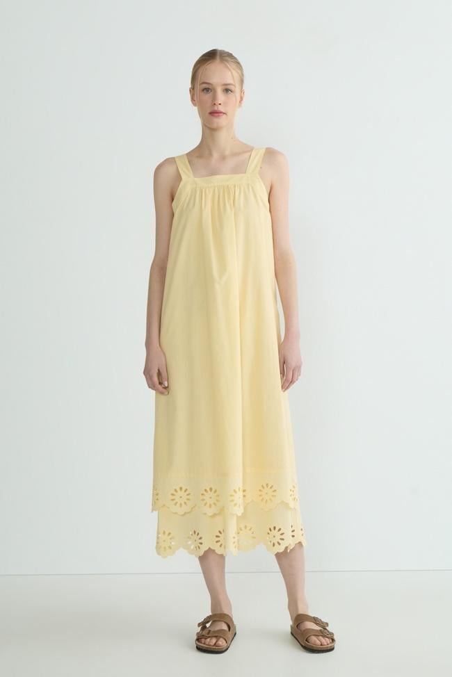 Vestido de tirantes, de corte recto y con detalles de bordados (25 euros).
