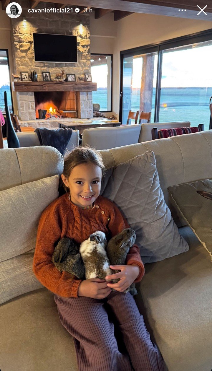Los tres animales (uno con predominancia de piel blanca, uno marrón claro y otro más oscuro), aparecieron en más de una publicación siempre en brazos de la sonriente niña. Y serán seguramente parte del hábitat del campo incluso mientras los dueños de casa no están. O tal vez los acompañen hasta Buenos Aires, donde Cavani también tiene un hogar con mucho verde en la localidad de Canning.