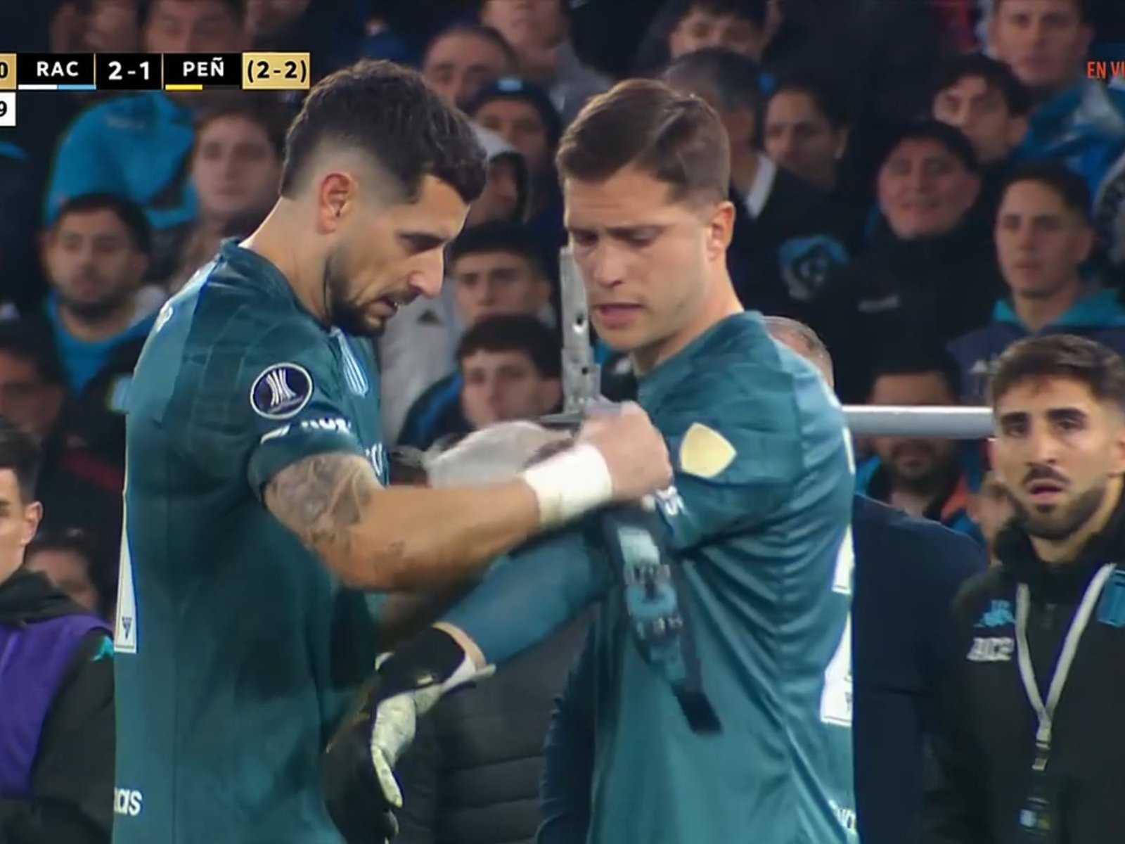 De repente parecía que algo estaba planificado, conversando. Empezaba el tiempo de descuento en Racing 2 – Penarol 1, camino a los penales, y Gustavo Costas mandan a la cancha a Facundo Cambeses y a Vietto, pensando en un atajador y en un pateador. Claro que la cara de Gabriel Arias no fue de bienvenida a su reemplazante, habitual suplente. Sorpresa para todos, nada hablado, decisión del cuerpo técnico. Porque Cambeses tuvo un alto porcentaje de atajadas de penales en Banfield, con más del 30% tapados.
