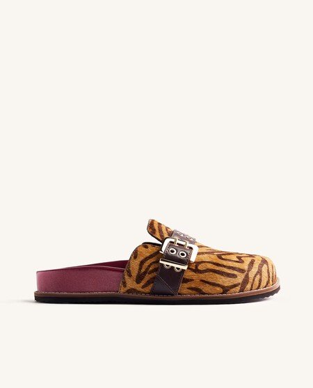 Los zuecos son los zapatos atrevidos más cool de la temporada. Los hay en versión Crocs más streetwear o en versión Birkenstock, con ese toque sobrio y atemporal que caracteriza a la marca. Éstos últimos son los favoritos y tienen clones en todas las firmas, pero ninguno como este de Gioseppo, que lleva el estampado animal más opulento por bandera.