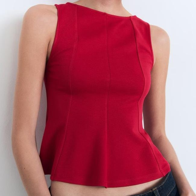 Este tipo de prendas de punto son una apuesta segura para cualquier look de verano. Apuesta por el color rojo para conseguir el mejor look del momento. Esta propuesta tiene todo lo que necesitas.