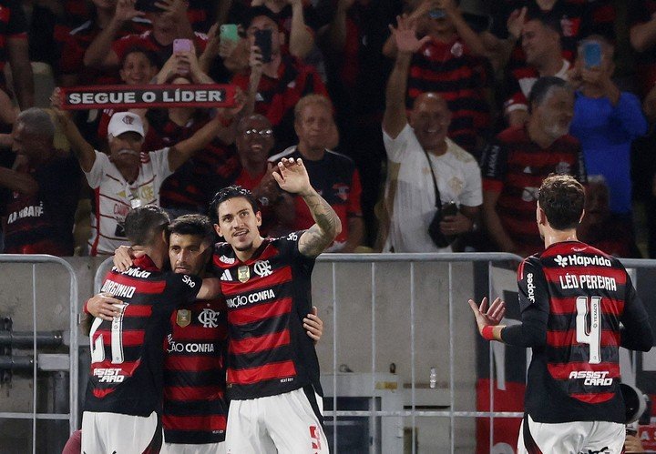 La fiesta flamenguista continuó con un recital en el segundo tiempo: Pedro aportó dos goles más para dejar el estadio con un hat-trick, el último gol con una definición de lujo tras gambetear a dos rivales en un espacio corto. Samuel Lino, Luiz Araujo y Bruno Henrique, de penal tras revisión del VAR, completaron el baile ante la locura de la torcida. Y la diferencia pudo ser mayor, ya que Carrascal, el colombiano que pasó por River, tuvo un tiro en el travesaño.