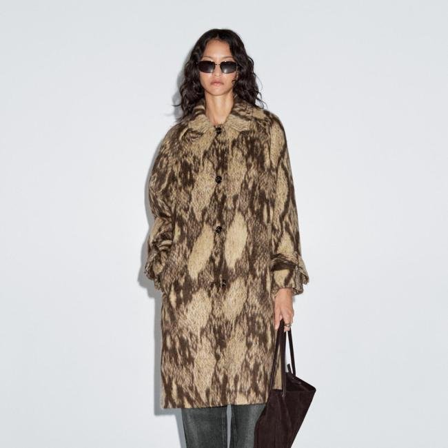 Abrigo estampado piel de serpiente, 299 euros.