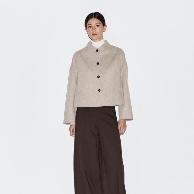 Abrigo corto de lana, 159 euros. Por último, esta opción me parece especialmente favorecedora para las chicas bajitas que andan buscando una prenda con la que completar cualquier look, independientemente de la ocasión a la que se enfrenten. Es un color que combina con todo, por lo que es un acierto asegurado.