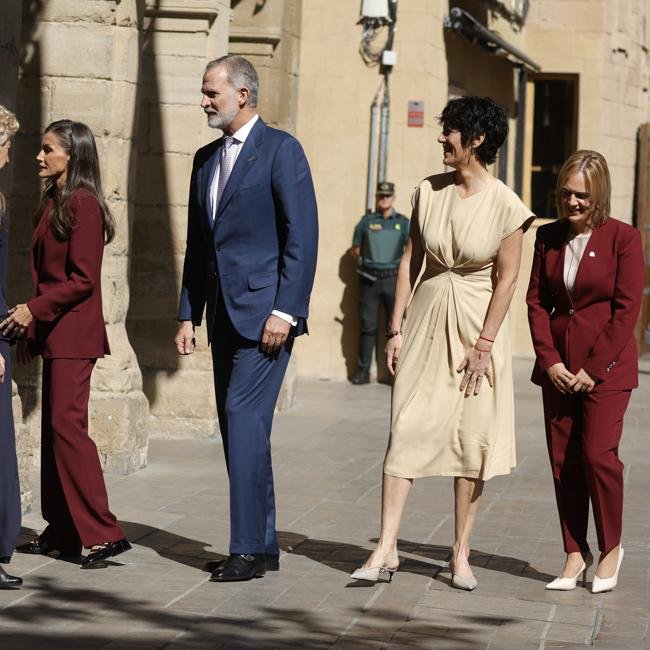 Y es que, doña Letizia ha quedado hoy relegada a un segundo plano al escoger un sencillo traje de chaqueta y pantalón en color burdeos. Un look muy elegante y acertado que no ha llamado la atención por lo bonito que era, sino porque era casi idéntico al elegido por Alicia Echeverría, delegada del Gobierno en Navarra.