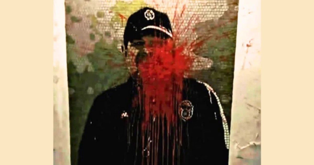 Tal como mostró una cámara de seguridad de la zona, cuatro individuos llegaron al lugar a bordo de tres motos y derramaron pintura sobre la obra de arte y otros símbolos alusivos al Lobo.