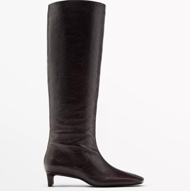 Botas de piel, 189 euros. El color es toda una declaración de intenciones que sienta bien en cualquier look que tengas en mente. A mí me gusta especialmente cuando lo combinas con faldas con silueta de A y blusas con lazada. Es como tener lo mejor de los dos mundos.