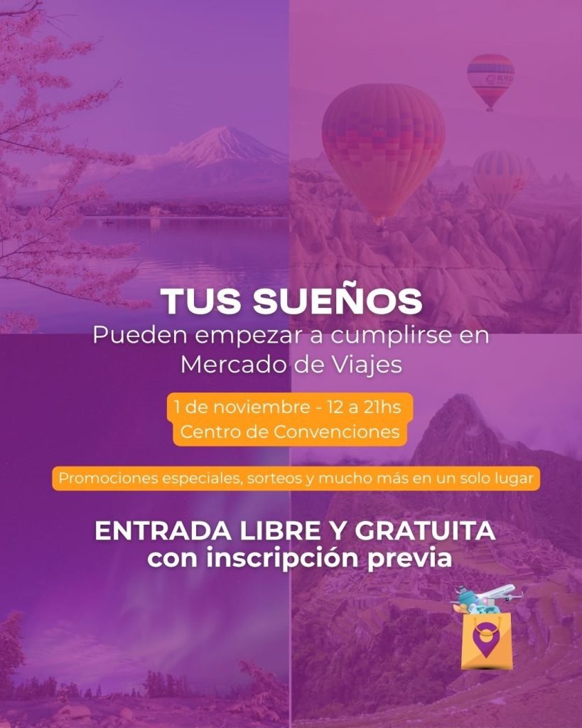 Con entrada libre y gratuita (previa inscripción https://view.itlg.io/event/110), Mercado de Viajes se presenta como una oportunidad única para descubrir destinos, planificar las próximas vacaciones y conocer de cerca las tendencias del sector.