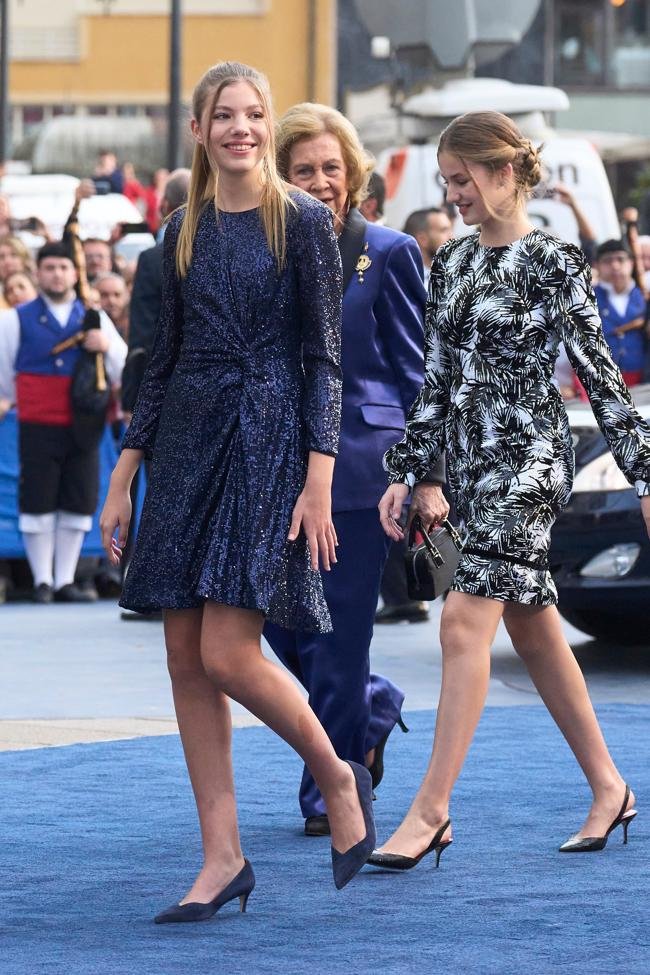 A pesar de estar relegada casi siempre a un segundo plano, la infanta Sofía suele ser la que más destaca en cuanto a estilismo se refiere. Sí, incluso en los Premios Princesa de Asturias. La hija pequeña de los reyes, consciente de que su hermana, la princesa Leonor, es la auténtica protagonista de esta cita que se celebra en Oviedo, apuesta por looks que se alejan cada vez más de los que elige la heredera al trono.