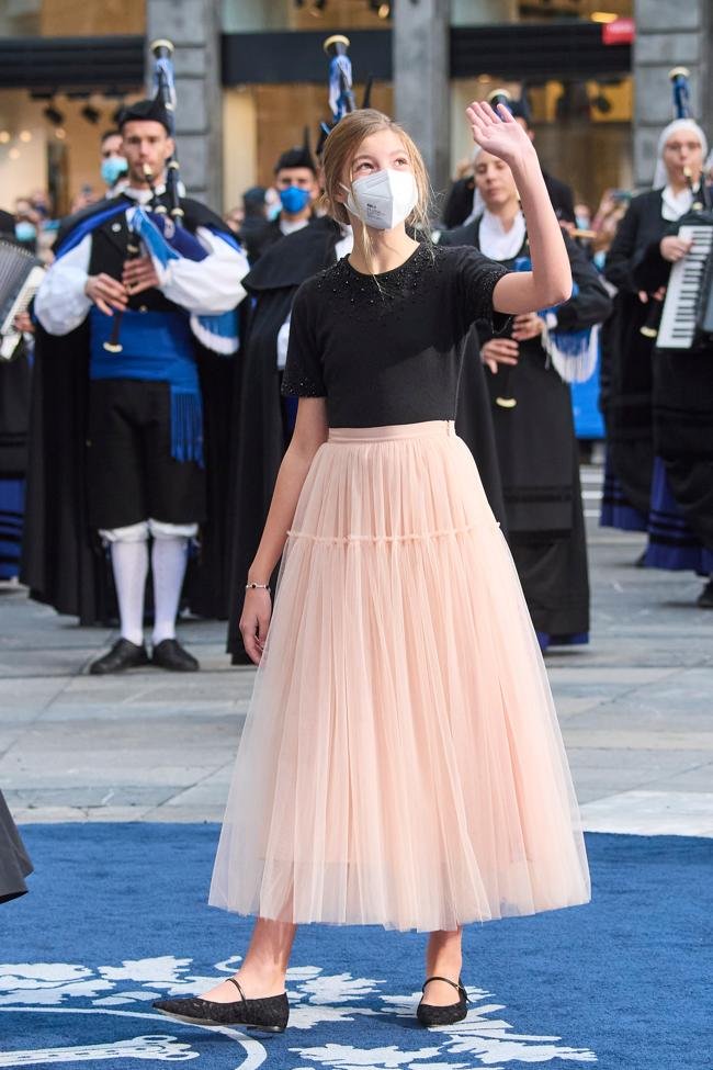 Ahora bien, si tuviéramos que elegir el mejor look de la infanta Sofía en esta cita que se celebra en Oviedo, sin lugar a dudas el primer puesto lo ocuparía el estilismo protagonizado por una falda de tul. Fue la primera vez que vimos marcar la diferencia a una joven Sofía que todavía era adolescente y que, pese a llevar una mascarilla blanca —obligatoria por la pandemia—, consiguió acaparar todas las miradas.