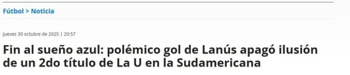 A su vez, también se pronuncio Bio Bio, un reconocido sitio de la región. «Fin al sueño azul: polémico gol de Lanús apagó ilusión de un segundo título de la U«, titularon. Otro que se sumó fue La Tercera, un diario de la zona. «Con una enorme polémica y pelea final: el juez Herrera y Lanús destruyen el sueño de la U de llegar a la final de la Sudamericana».