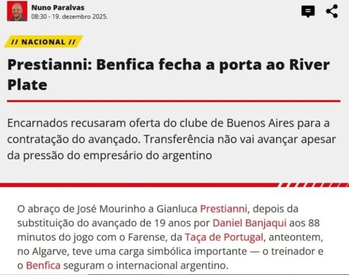 No lo Prestianni. Las noticias que llegan desde Portugal no le hacen un guiño a River. Mientras desde las oficinas del Monumental siguen elaborando una propuesta que pueda seducir al Benfica, la postura del club luso, al menos hasta el momento, es firme y no tiene intenciones de desprenderse del joven volante argentino mediante una cesión.