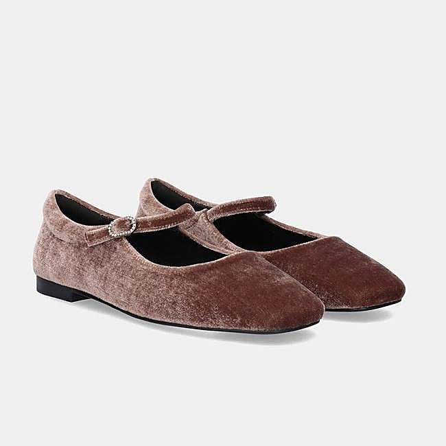Estas merceditas de terciopelo son de Macarena Shoes. Su doble traba aporta diseño, y el cierre ajustable asegura un ajuste preciso, mientras que el suave terciopelo les otorga un aire sofisticado y atemporal. Precio: 45 euros.