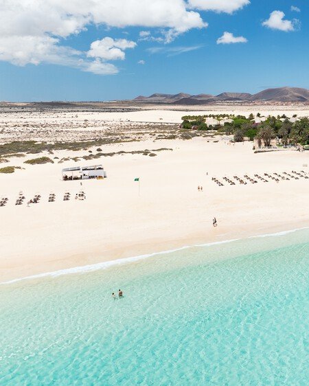 Este rincón mágico que vive ajeno al invierno y se quedó atrapado en el calorcito del verano está pegado al pueblo de Corralejo, en un espacio natural protegido de dunas de arena blanca que llegan hasta el mar. Por eso, el fondo del mar es de ese color turquesa vibrante, por su fondo es limpio, claro y muy agradable para los pies.