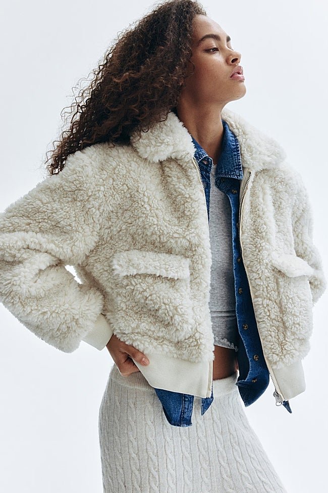 Si lo tuyo no son los abrigos largos o midi, tienes que apostar por este tipo de chaquetas cortas tipo bomber, cubiertas de pelo o borreguito. La llevarás con cualquier look diario de tu armario.