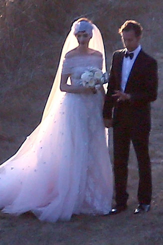 La actriz Anne Hathaway, otra de las musas más icónicas de Valentino, se casó con Adam Shulman en 2012 y su vestido de novia fue uno de los más destacados de la época por lo especial que era. Se trataba de un diseño al más puro estilo Old Hollywood con un corpiño envolvente de escote bardot y adornado con detalles de encaje. Una falda voluminosa en corte A y una cola pintada a mano con flores bordadas de color rosa y cuentas de cristal acaparaban todas las miradas, además de su ya icónica diadema de cristales.