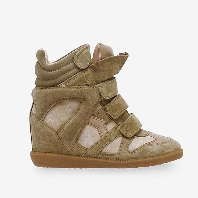 Hace tiempo que Zara se atrevió con un modelo muy parecido y ahora Bershka, por ejemplo, tiene a la venta unas zapatillas muy parecidas a las de Isabel Marant. Se trata de un modelo abotinado con cuña interior y el característico cierre de velcro, que además incluye una plantilla técnica flexible de espuma para que resulten de lo más cómodas.