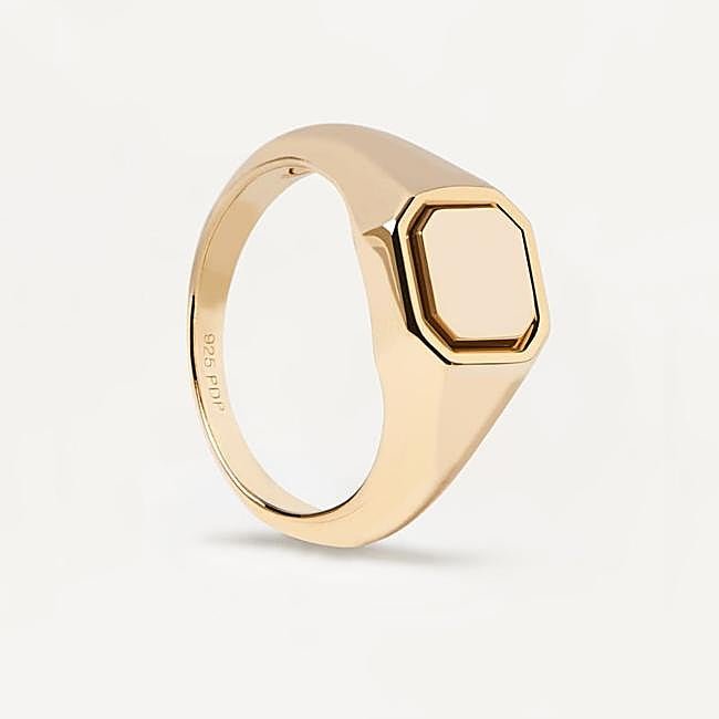 En PdPaola tienes este sello personalizable. Se trata de un clásico para siempre versionado en forma hexagonal. Es una opción con un baño de oro de 18K que ha sido diseñada para ocasiones especiales, como un regalo significativo, un compromiso o un aniversario. Precio: rebajado a 52,50 euros.