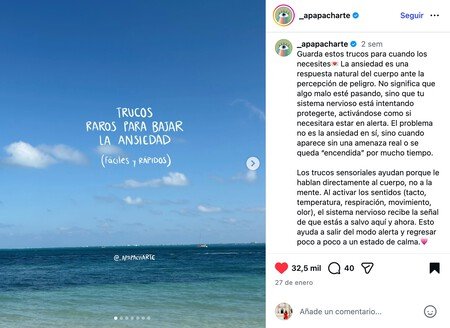 Según la psicóloga Isabella Hinojosa, “los trucos sensoriales ayudan a la ansiedad porque le hablan directamente al cuerpo, no a la mente”. La ansiedad es una respuesta de alerta del cuerpo cuando nos sentimos en peligro, pero lo malo es que en la mayoría de ocasiones no existe un peligro real, aunque nuestro sistema nervioso crea que sí. “El problema no es la ansiedad en sí, sino cuando aparece sin una amenaza real o se queda “encendida” mucho tiempo”, explica Hinojosa en las redes sociales de Apapacharte.