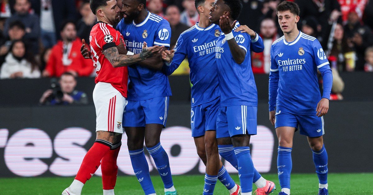 Este picante enfrentamiento entre el defensor y el delantero fue uno de los tantos que tuvieron durante el desarrollo del partido en Lisboa. El primero de ellos se dio a los 36′ del primer tiempo, cuando con Rafa Silva en el piso, Ota y Prestianni empezaron a empujar a Vinícius, Mbappé y Rudiger, quienes intentaban levantar al futbolista portugués.