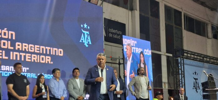Los miembros del Comité Ejecutivo de AFA en el escenario (Foto:@ascensointerior).Los miembros del Comité Ejecutivo de AFA en el escenario (Foto:@ascensointerior).
