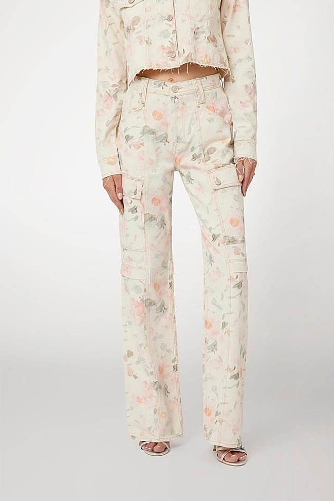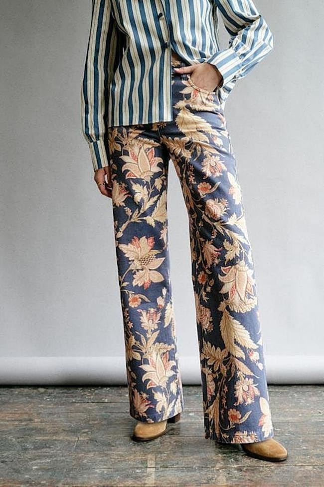 Vaquero recto con estampado de flores de estilo retro y un diseño de talle alto con cinco bolsillos. Precio: 215 euros.