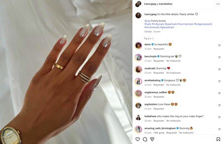Una manicura lujosa e increíblemente atractiva es esta de uñas perladas en blanco uno de los colores más demandados en primavera. Pero más allá del color, que es un blanco Cloud Cancer en toda regla, el acabado es la clave. Las uñas perladas son muy luminosas al igual que los acabados glaseados o metalizados, por ello se convierten en una gran opción para elevar cualquier manicura de invitada.