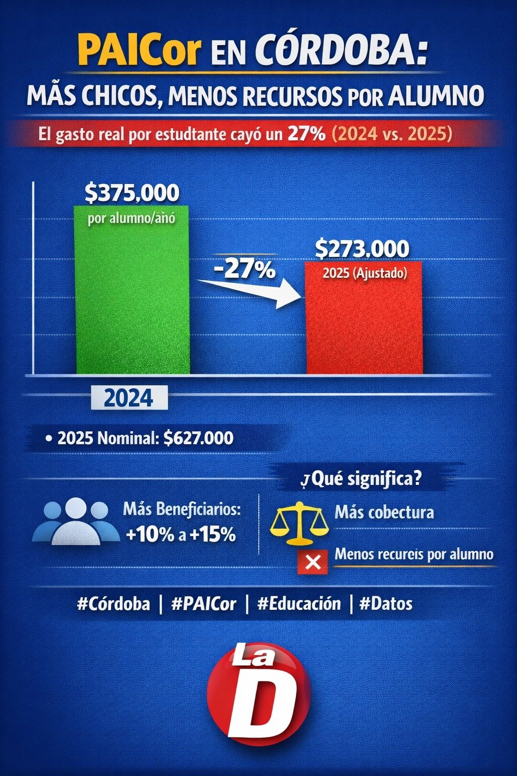 2025: $210.000 M / 335.000 alumnos ≈ $627.000 por alumno/año