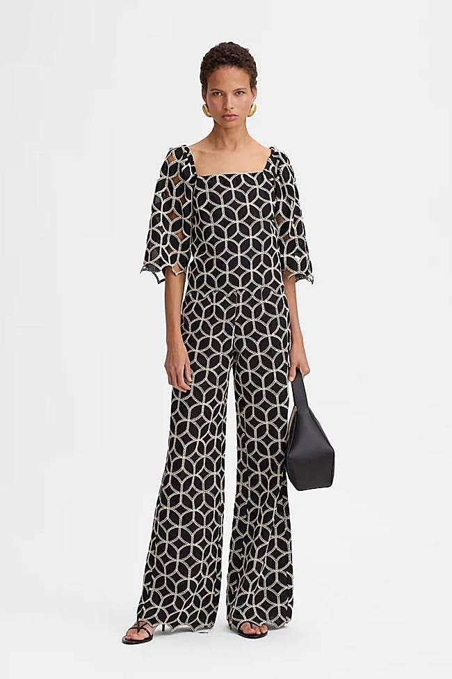 La primera opción es este conjunto de top y pantalón ancho de Morris donde el gran atractivo radica en su estampado floral, el comodín por excelencia de los looks primaverales. Nos encanta por su aire juvenil y desenfadado que, sin embargo, no deja de ser tremendamente elegante. El efecto falda que se origina por el espectacular volumen del pantalón le da también puntos a favor.