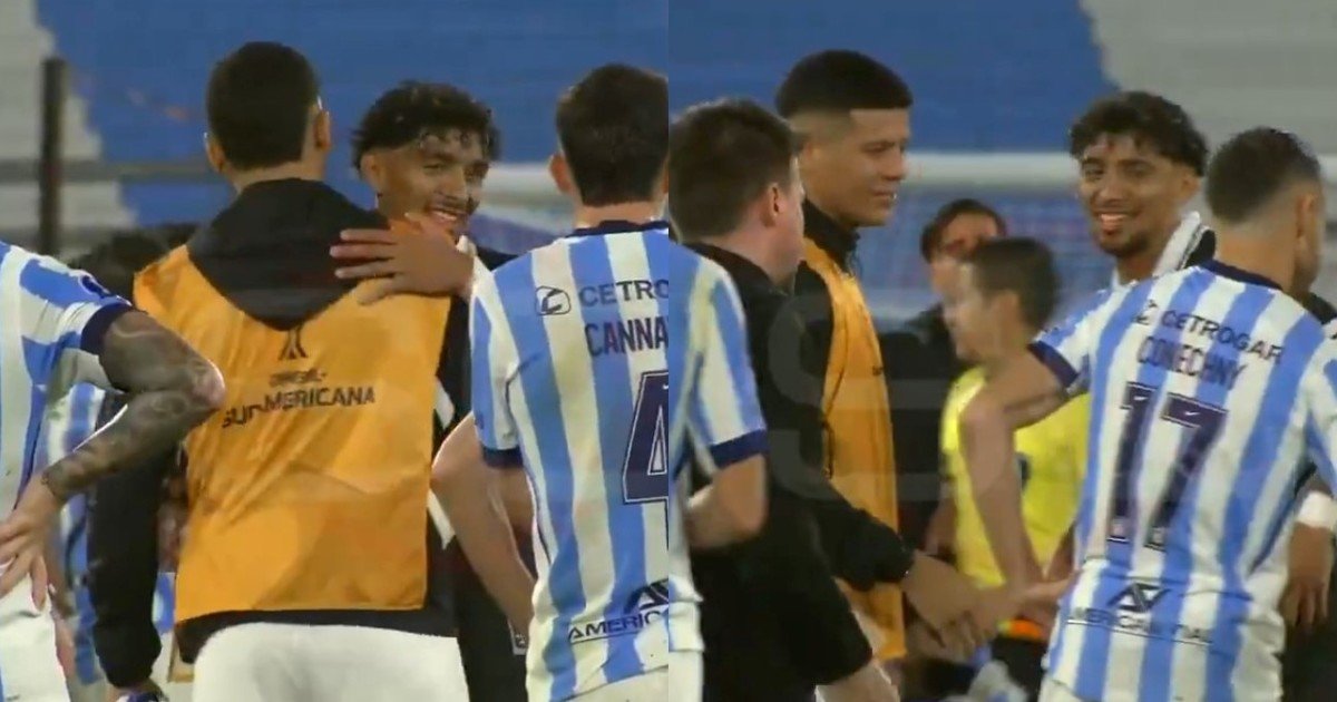 Y lo que despertó el enojo de múltiples hinchas de Racing en las redes fue que el saludo entre ambos, y el posterior intercambio de camisetas, se dio con risas de por medio. La cámara que captó esa charla de los dos, de hecho, muestra en el mismo plano, por ejemplo, a Franco Pardo, a Ezequiel Cannavo y a Nazareno Colombo notoriamente frustrados por la caída.