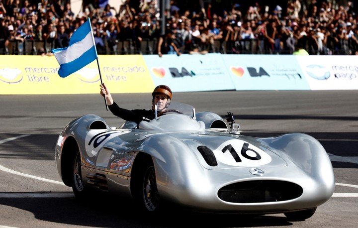 Fue un homenaje cargado de emoción. Colapinto no utilizó el casco cerrado habitual, sino uno de estilo clásico, marrón símil cuero, al estilo de la época de Juan Manuel Fangio, dejando el rostro al descubierto. A velocidad moderada, el argentino recorrió la Avenida del Libertador y la Avenida Sarmiento, y hasta se acercó a las vallas para que los fanáticos pudieran fotografiarlo.