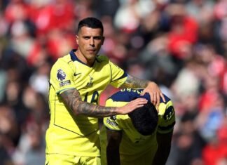 13/04/2026 19:24hs.El día después de su lesión en la rodilla derecha, Cristian Romero caminó por las calles de Londres. Se lo pudo apreciar con una venda en...