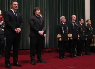 El presidente Javier Milei encabeza en Casa Rosada la entrega de sables a las...