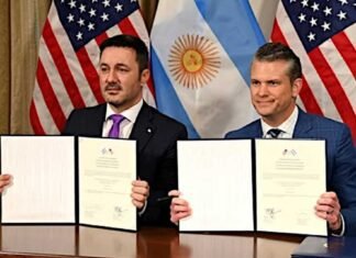 El ministro de Defensa Nacional, Luis Petri se reunió en el Pentágono y, junto con el secretario de Defensa norteamericano, Pete Hegseth, firmó la carta de aceptación...