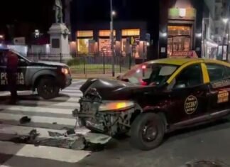 Manejaba borracho a contramano por Avenida Córdoba, chocó un taxi y terminó incrustado en...
